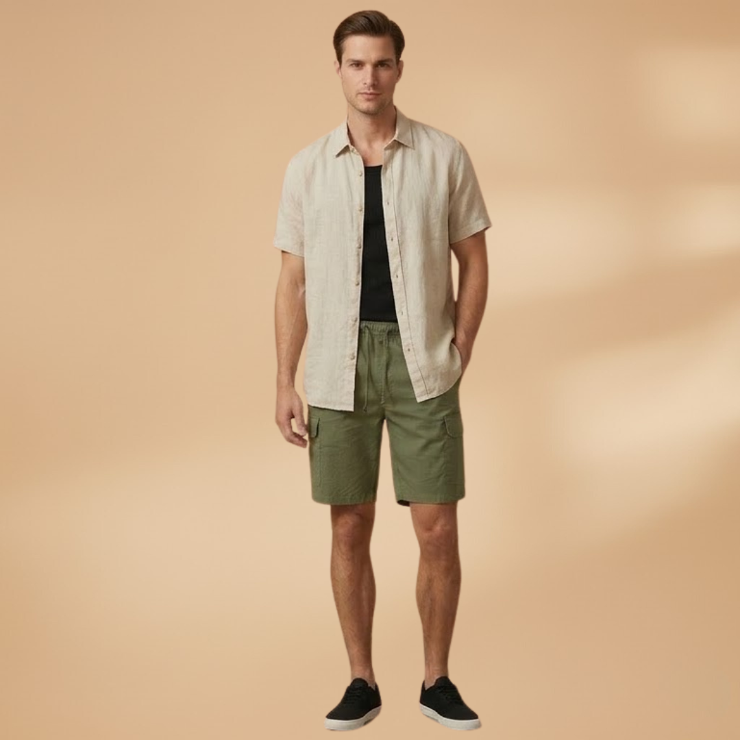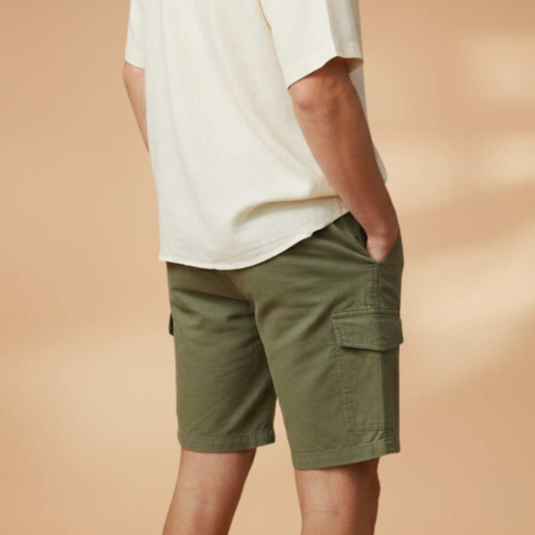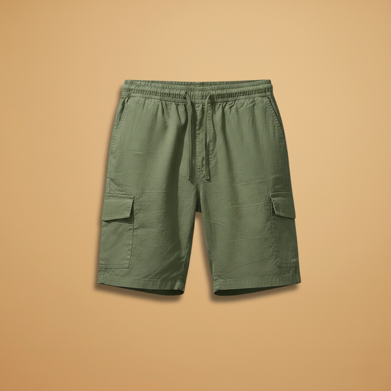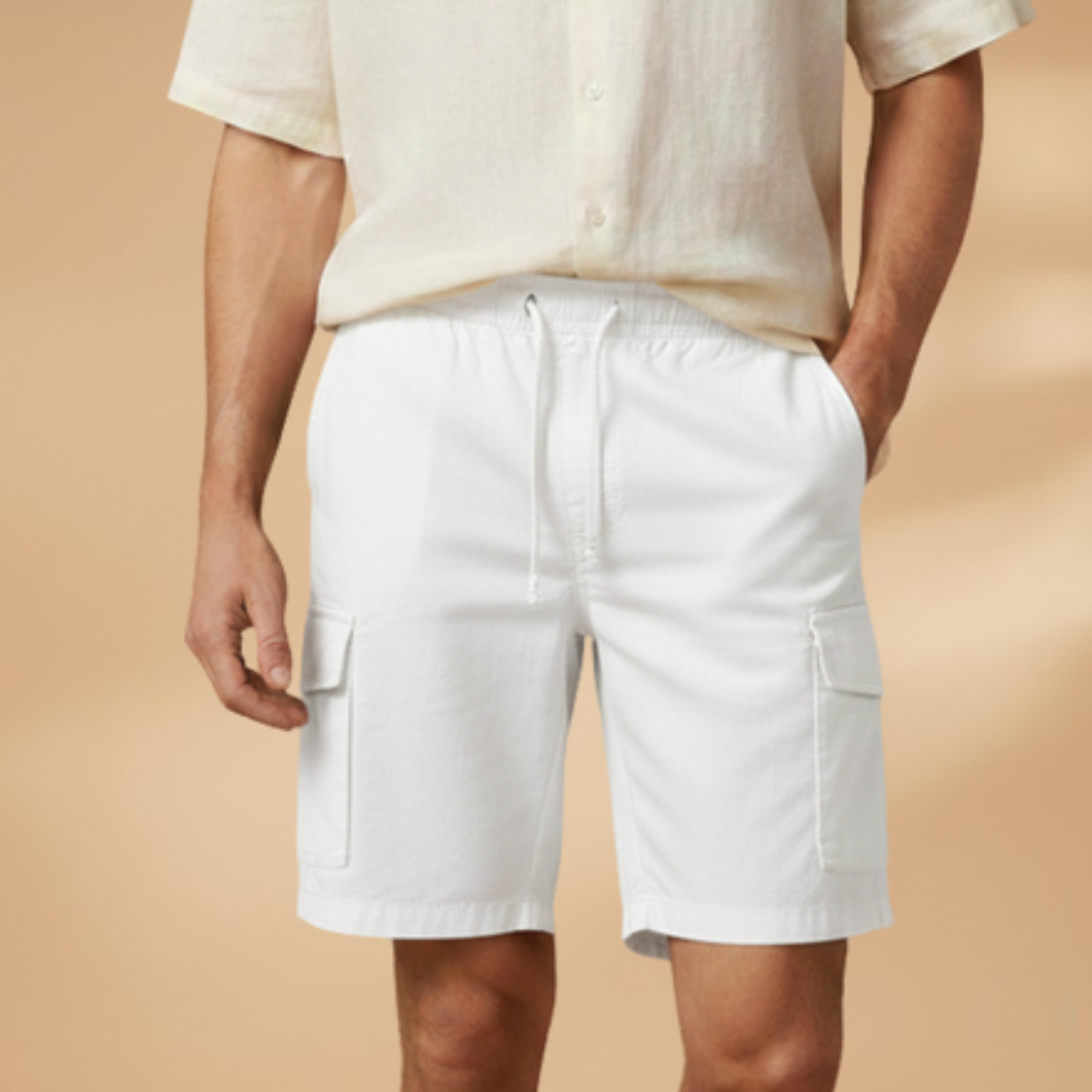Men’s cargo shorts with a drawstring waist and cargo pockets, designed for summer use