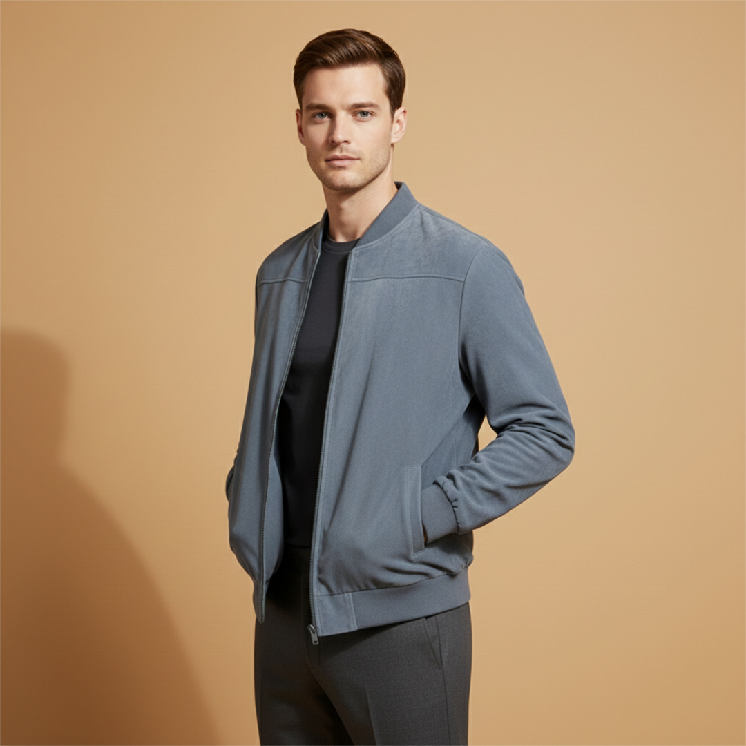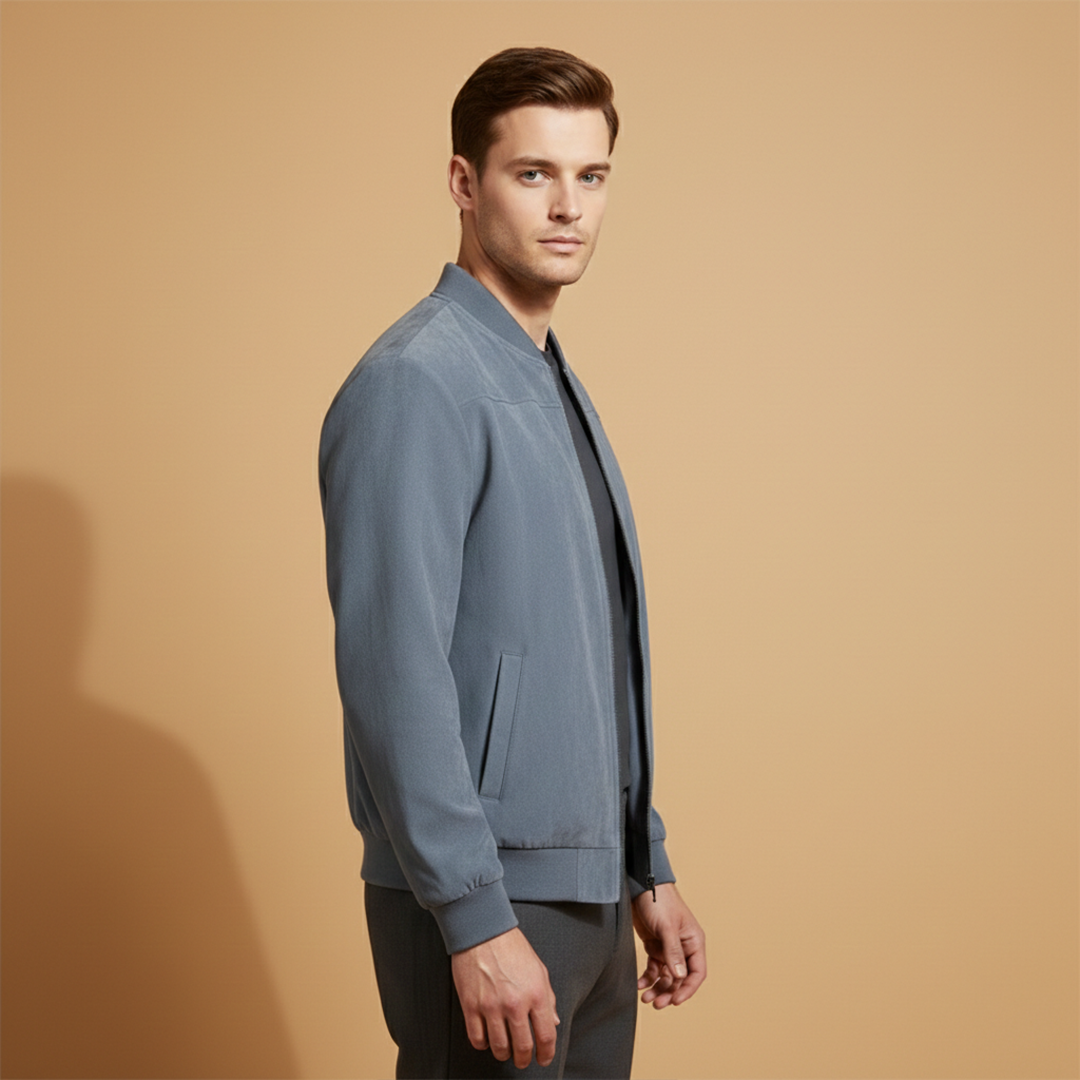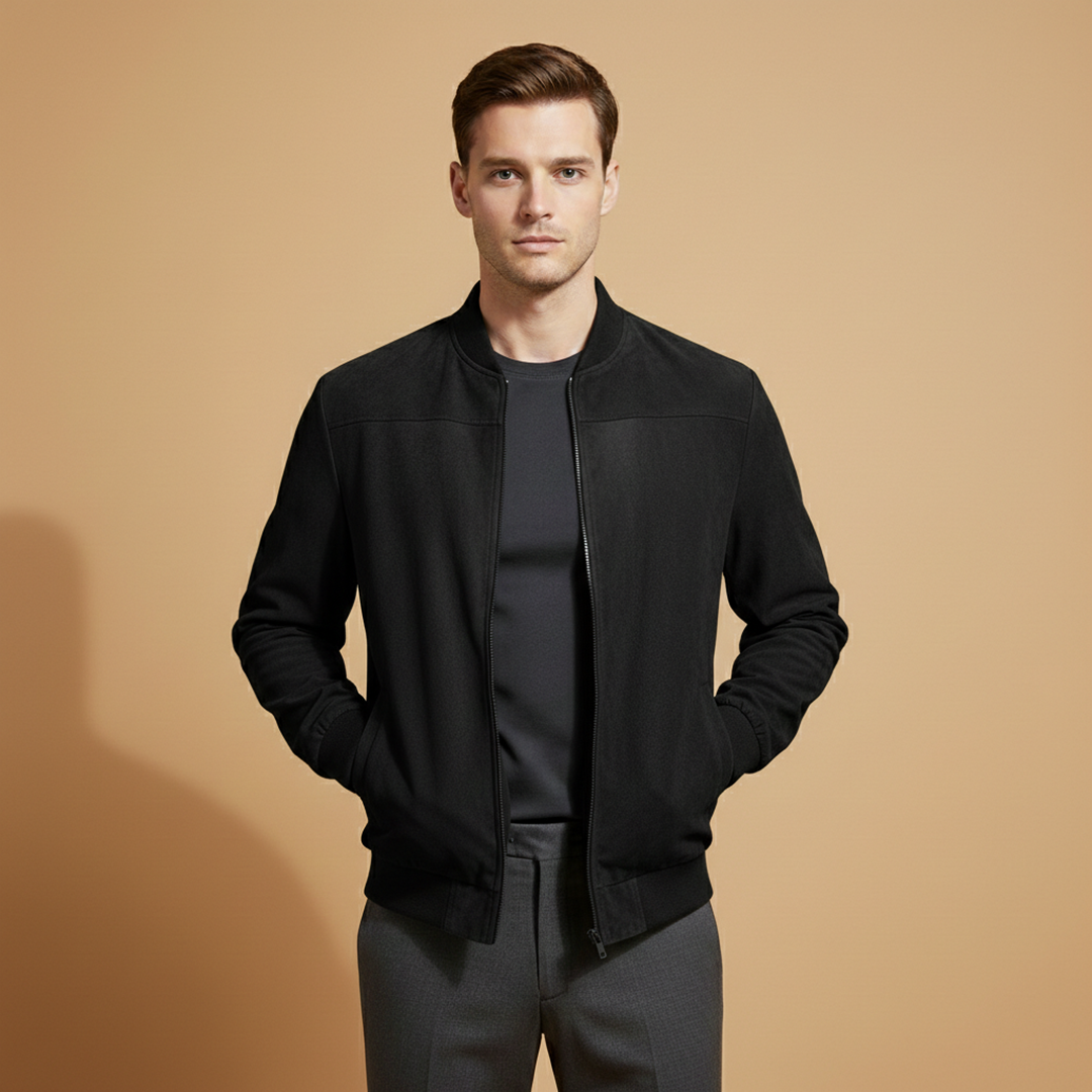 Men’s jacket featuring a zip-front design with ribbed edge detailing