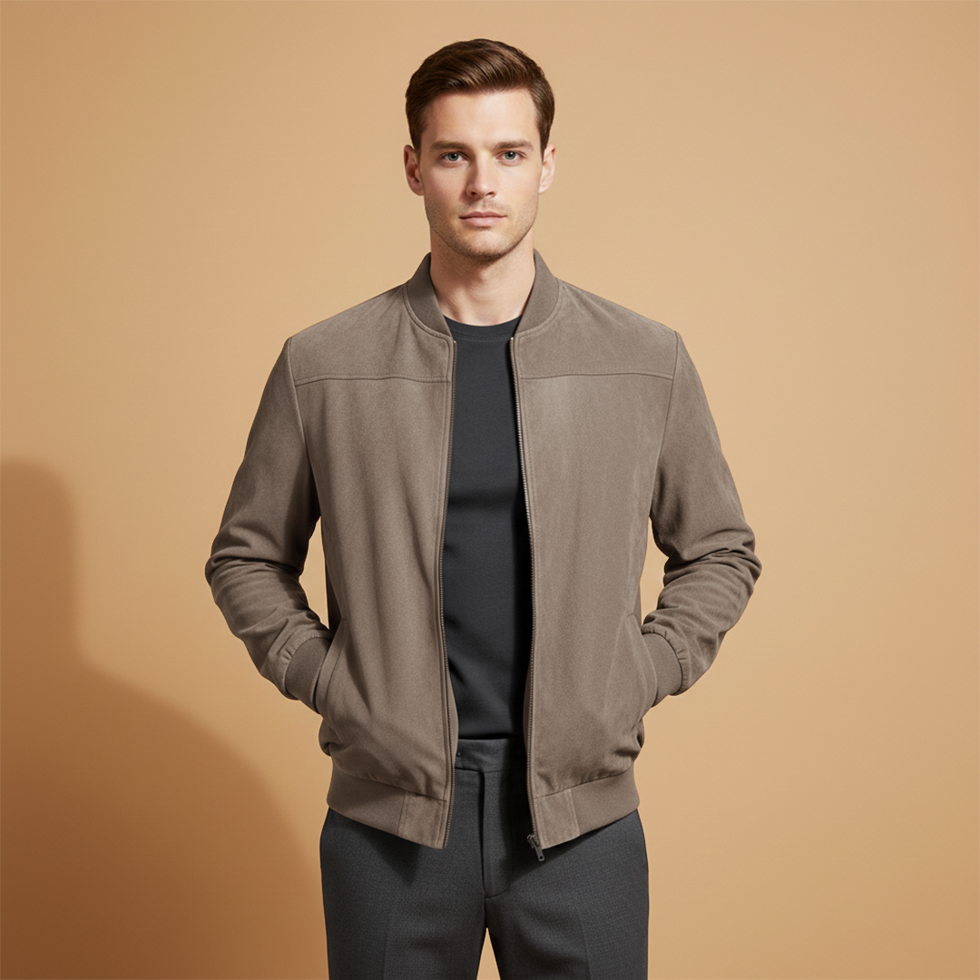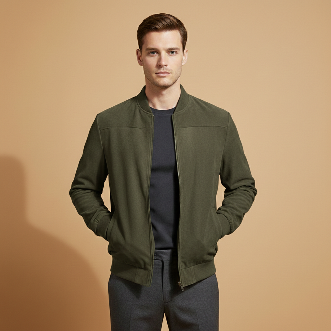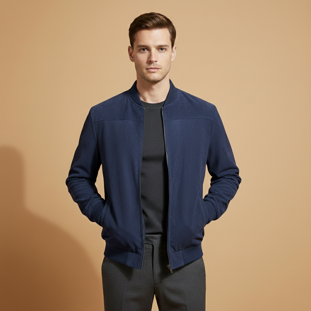 Men’s jacket featuring a zip-front design with ribbed edge detailing