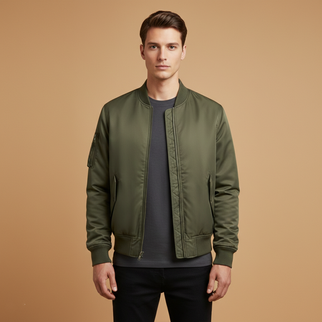 Men's Jacket with Zip Closure and Ribbed Cuffs