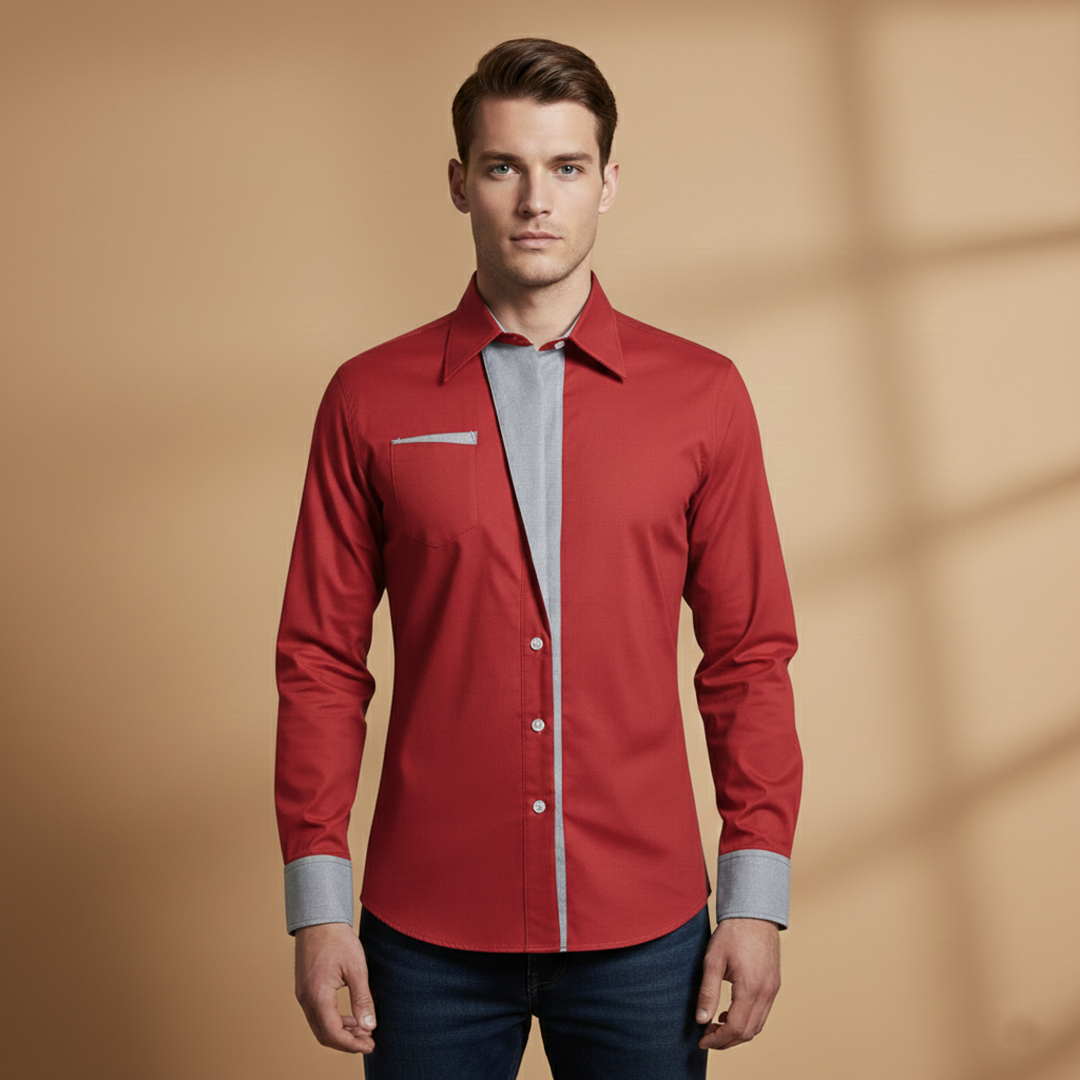 Men's Shirt with Buttons and Contrasting Collar and Cuffs