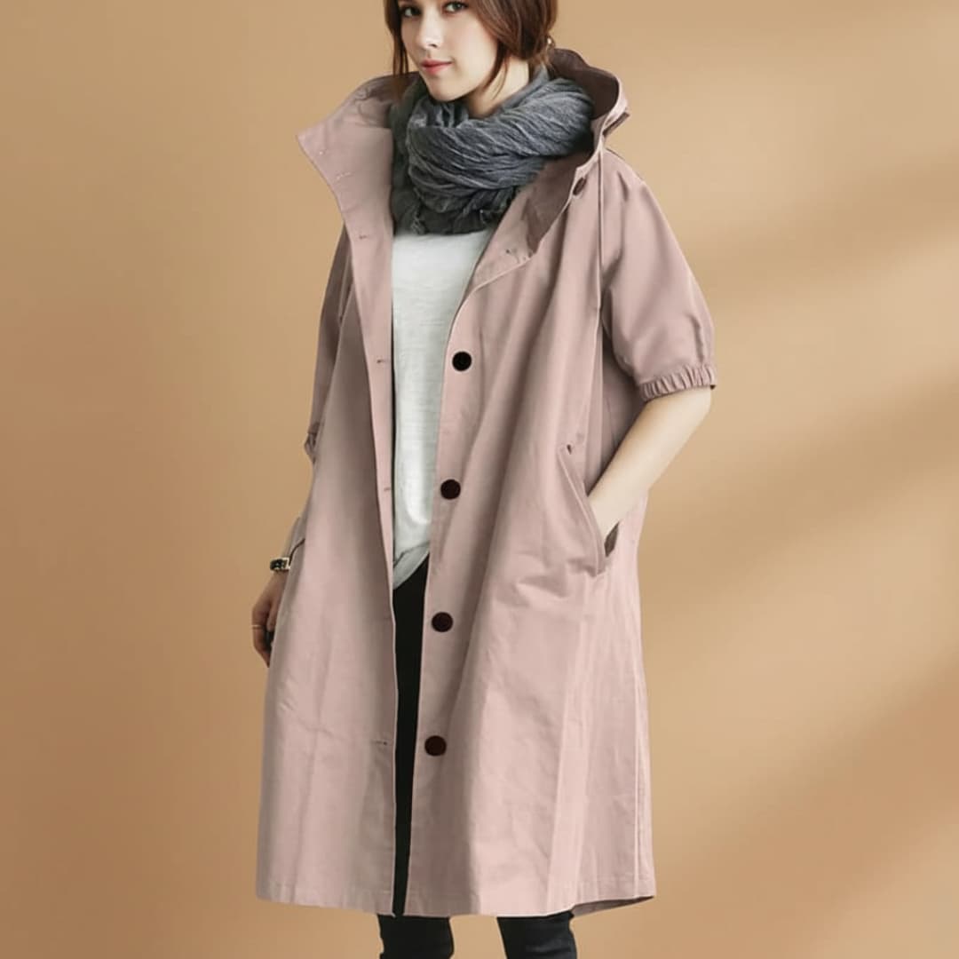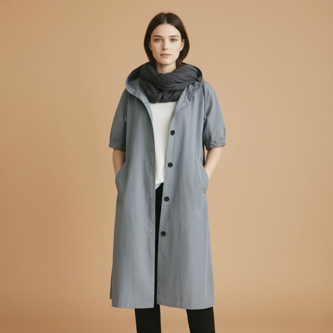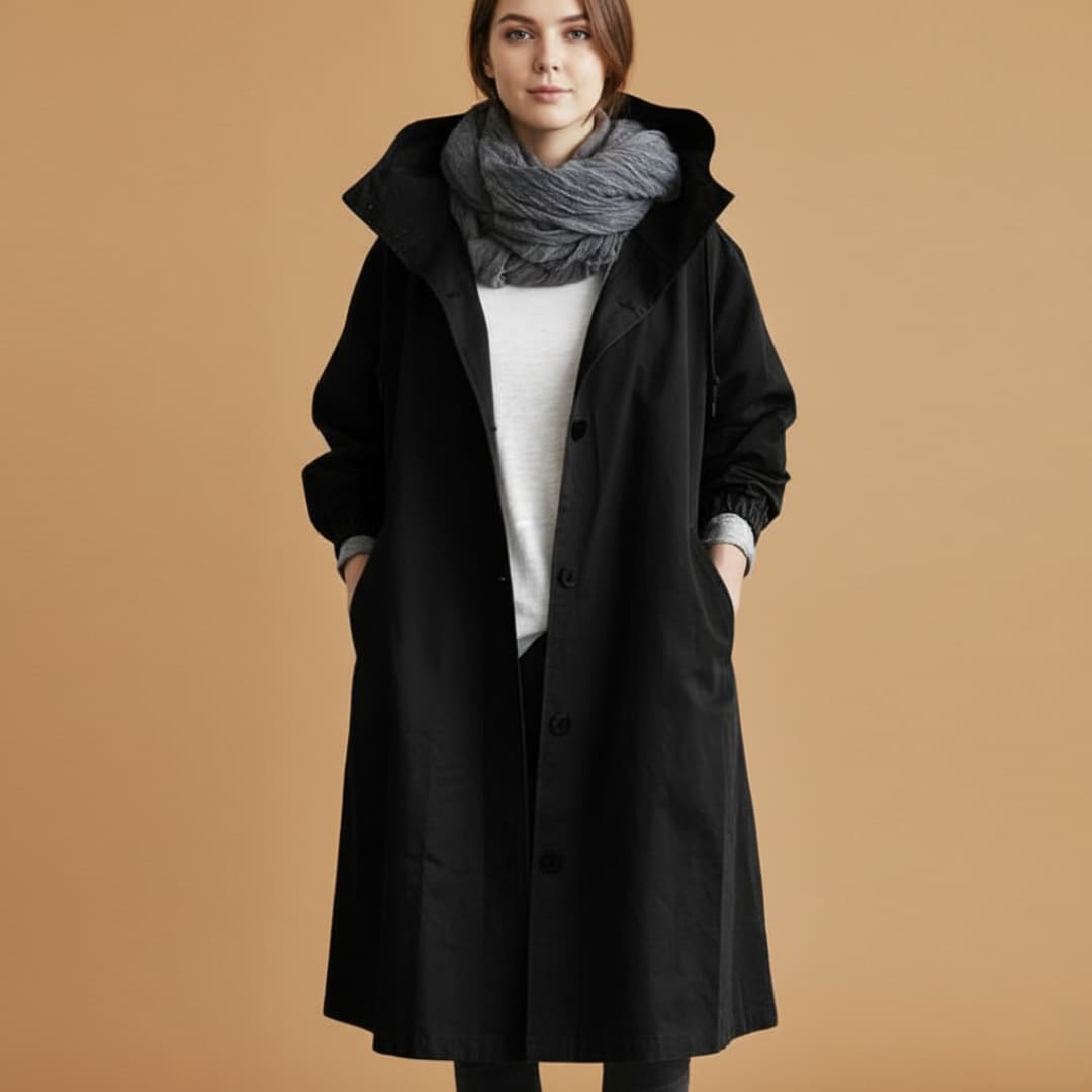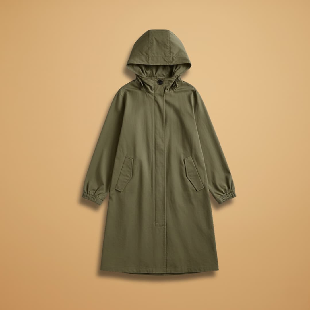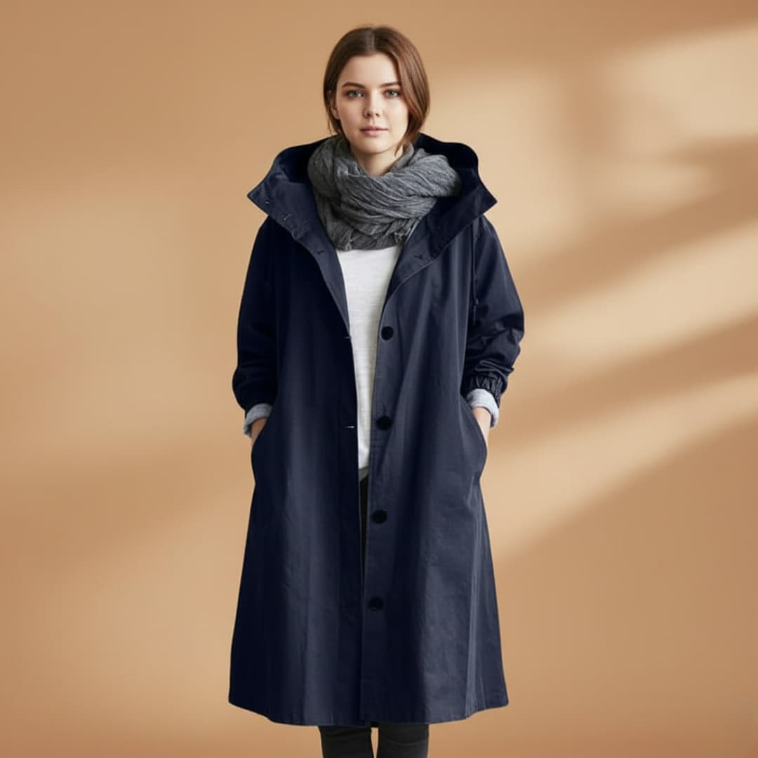 Women’s Long Raincoat with Adjustable Hood and Side Pockets