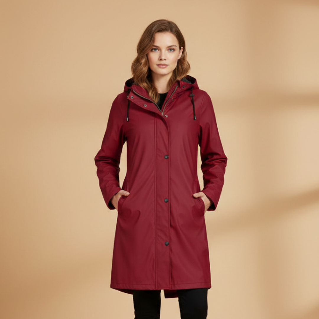 Women’s Raincoat with Hood and Zip Closure